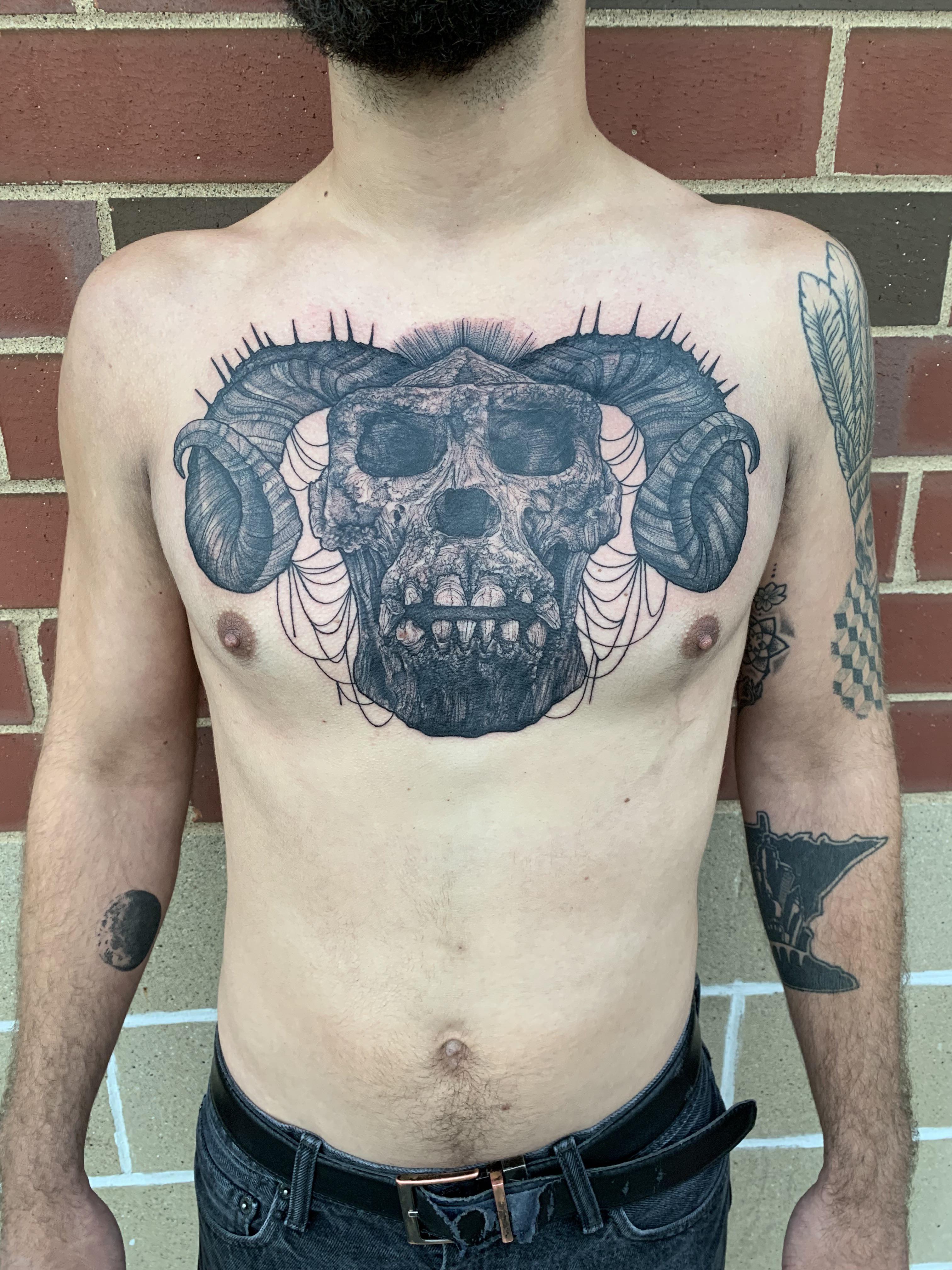 Demon Skull by Lucy Anne at Sharktooth Tattoo St. Paul, MN. r/tattoos
